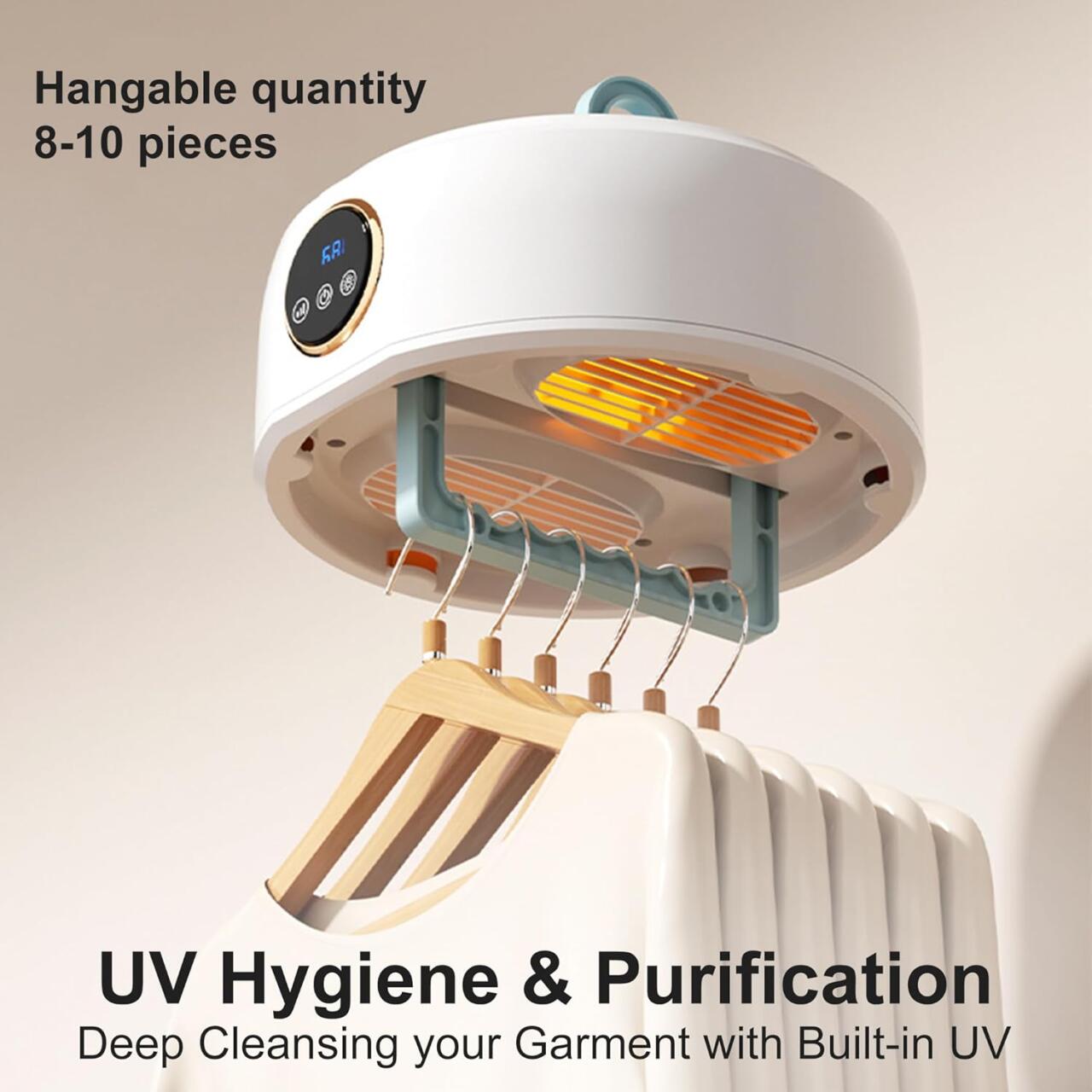 • Beneficio 1 – Grande capacidade: A pesar do seu design compacto, pode secar até 10 kg de roupa, ideal para famílias.
